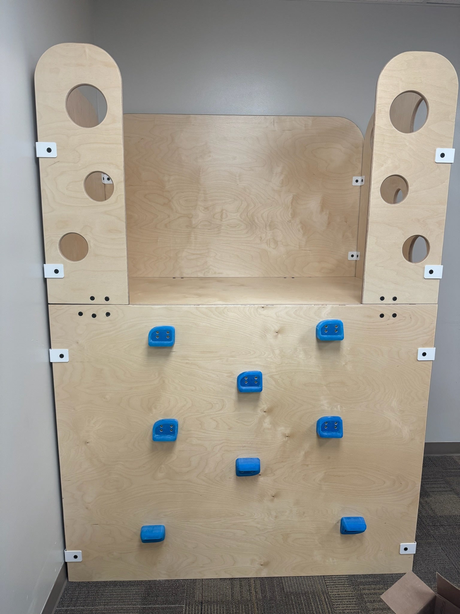 • Customizable bracket and climbing hold color available upon request. Standard is white brackets and blue themed holds.