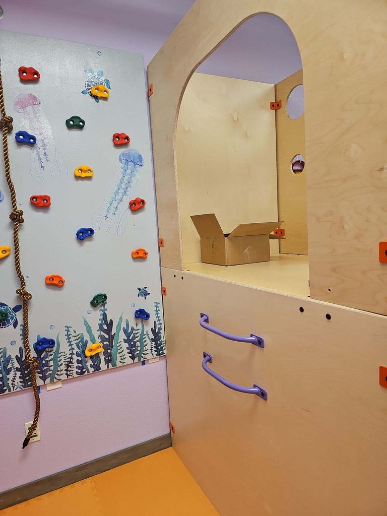 A built-in climbing feature with our custom-designed climbing holds—sized specifically for children’s hands—provides a safe and engaging challenge for kids to build strength, confidence, and coordination.